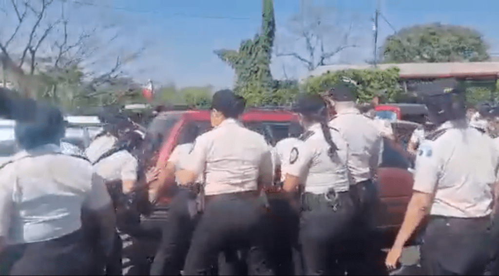 Los agentes reaccionaron ante la situación y retiraron a empujones los vehículos que prohibían el paso.