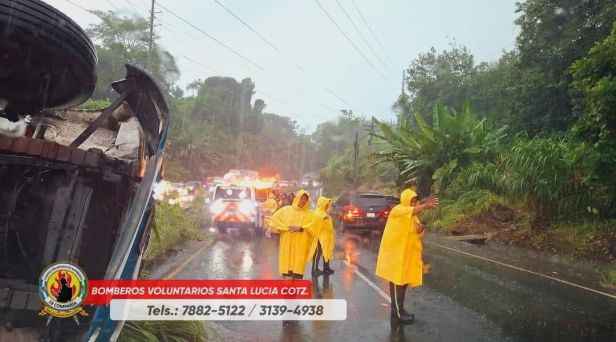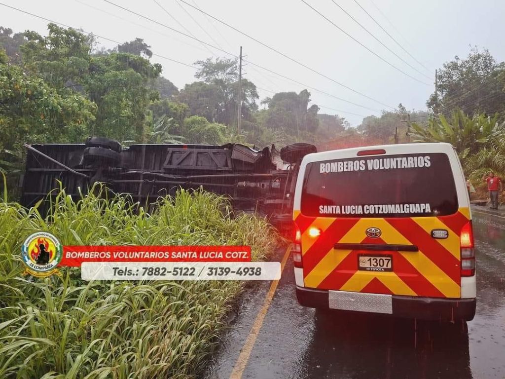 Bomberos Voluntarios de la 18a. Compañía fueron destacados a bordo de las unidades No. 1307 y No. 1508 al km. 98 de la carretera al pacífico, jurisdicción de Santa Lucía Cotzumalguapa, Escuintla.
